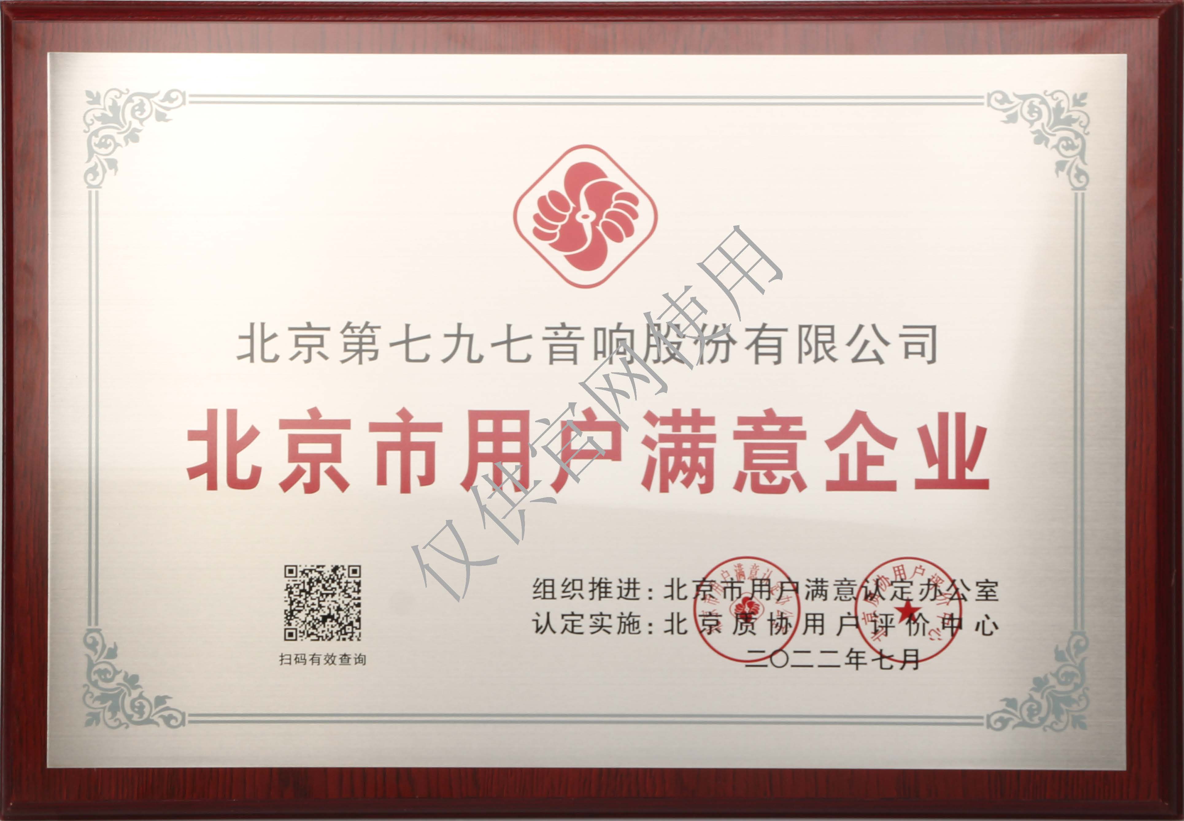 北京市用戶滿意企業(yè)牌匾
